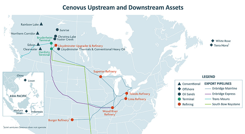 This is in addition to Cenovus’ significant downstream capacity across North America with upgrading and refining operations in Canada and the US, as well as commercial fuel operations.